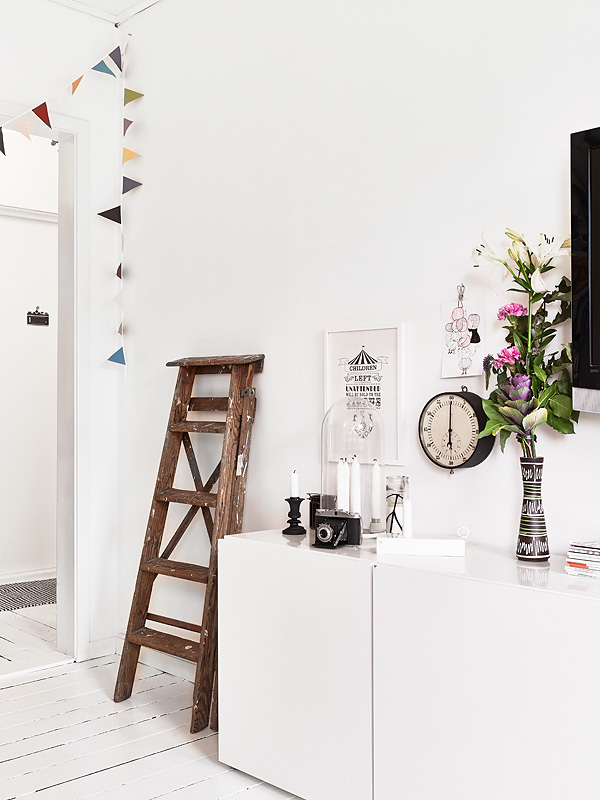 Unas manos de pintura, luminoso blanco y delicada combinación entre estilos, hacen que este piso mantenga la esencia nórdica y vintage, denotada en los jirones y textura del suelo, o en las piezas de madera atemporales que se encargan de acompañar y poner atrezzo.